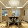 西苑小区位于山东省临沂市,项目成熟稳定,周边交通便利,配套设施完善,适宜生活居住。本案所示是一套137平米四居室的欧式风格装修效果图,装修预算约为12万元,工程类型为半包。此套设计从客厅的地面处理开始,就强调欧式风格系列家装的特征。客厅地面采用欧式大理石抛光地砖铺成,地砖框线镶拼线条明显,勾勒自然,强调视觉感受。墙面采用欧式拼花墙纸拼贴,纹理自然,色泽保守,顶棚采用石膏板精心顶,层级明显,线条自然,刻画有力,井然有序。吊顶正中间的欧式水晶大吊灯显得格外分明,起到了对整个客厅职能空间的画龙点晴作用。空间内填充的欧式造型家具配置显得妥当至极。总体设计优雅别致,和谐自然、协调统一。