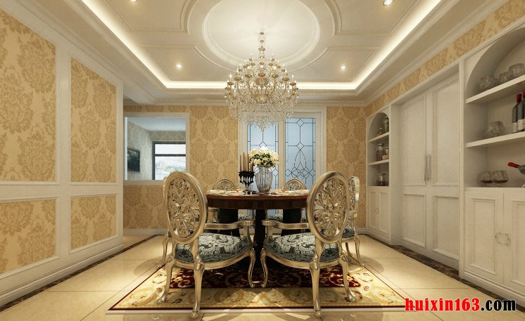 西苑小区位于山东省临沂市,项目成熟稳定,周边交通便利,配套设施完善,适宜生活居住。本案所示是一套137平米四居室的欧式风格装修效果图,装修预算约为12万元,工程类型为半包。此套设计从客厅的地面处理开始,就强调欧式风格系列家装的特征。客厅地面采用欧式大理石抛光地砖铺成,地砖框线镶拼线条明显,勾勒自然,强调视觉感受。墙面采用欧式拼花墙纸拼贴,纹理自然,色泽保守,顶棚采用石膏板精心顶,层级明显,线条自然,刻画有力,井然有序。吊顶正中间的欧式水晶大吊灯显得格外分明,起到了对整个客厅职能空间的画龙点晴作用。空间内填充的欧式造型家具配置显得妥当至极。总体设计优雅别致,和谐自然、协调统一。