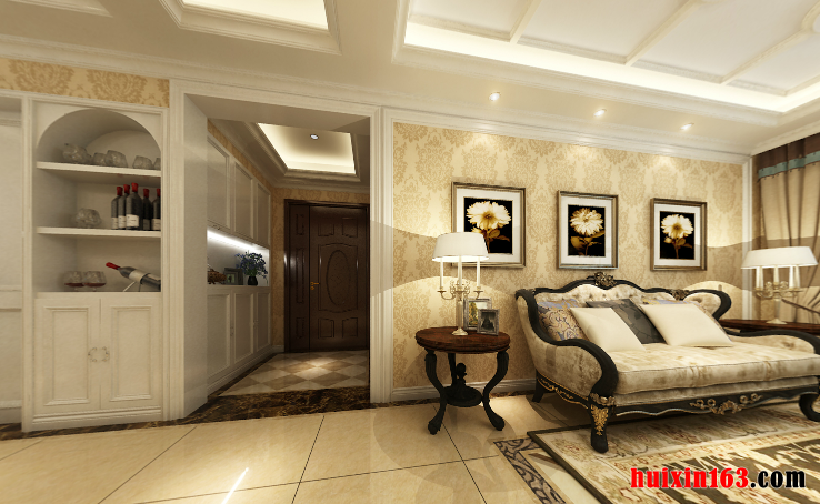 西苑小区位于山东省临沂市,项目成熟稳定,周边交通便利,配套设施完善,适宜生活居住。本案所示是一套137平米四居室的欧式风格装修效果图,装修预算约为12万元,工程类型为半包。此套设计从客厅的地面处理开始,就强调欧式风格系列家装的特征。客厅地面采用欧式大理石抛光地砖铺成,地砖框线镶拼线条明显,勾勒自然,强调视觉感受。墙面采用欧式拼花墙纸拼贴,纹理自然,色泽保守,顶棚采用石膏板精心顶,层级明显,线条自然,刻画有力,井然有序。吊顶正中间的欧式水晶大吊灯显得格外分明,起到了对整个客厅职能空间的画龙点晴作用。空间内填充的欧式造型家具配置显得妥当至极。总体设计优雅别致,和谐自然、协调统一。
