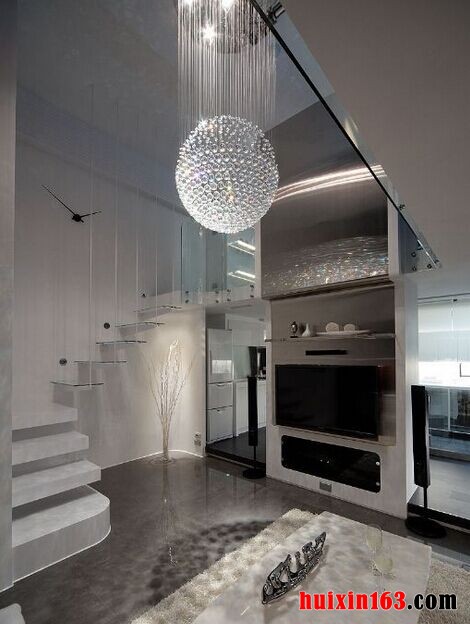 简约风的装修设计,根据业主爱好的不同,居室装修所展现出来的效果也有所差别,在本案例的设计当中,空间不管是造型的设计还是色彩的搭配,都显得比较新颖别致,而且营造出来的效果有着一种梦幻般的感觉,例如客厅的装修布置,一盏华丽且时尚的水晶吊灯安装,将客厅浪漫的氛围展现淋漓尽致,通过灯光营造在地面的效果为空间铺上一层朦胧美感,一张白色的毛绒地毯铺设,将空间的氛围营造得神圣无比,在客厅电视的一侧就是楼梯的设计,其造型同样有着创新效果,卧室的设计也展现出雅致、时尚的一面,这些都能说明业主是一个比较懂得享受生活的人。