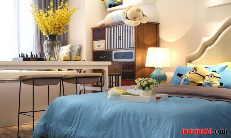 本案例采用的是田园风的装修风格,整个空间的设计大量的留白处理,展现出一个惬意舒适的居室环境,在客厅的布置当中,采用平顶式的石膏板吊顶,搭配上两盏个性的吊灯,空间五颜六色的色彩搭配,让居室不显得单调乏味,实木铺设的地毯,鲜明的色彩反差,与吊顶上下相互呼应,客厅所占据的空间面积并不是很大,但却显得比较自然舒适,个性的电视柜设计,一旁就是一个小书柜的设计,装饰空间的同时,也增加了空间的收纳功能,落地窗的设计搭配上轻质的窗帘,让狭窄的空间显得更加的明亮透彻,餐厅的设计也比较个性,不管是造型设计还是色彩搭配都比较新颖。